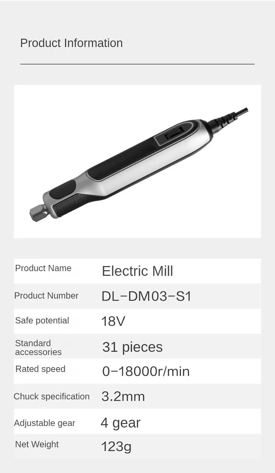 AOOKMIYA Deli Engraving Pen Grinder 18V 4-speed Regulation Engraver Mini Drill Electric Rotary Tool DIY Drill Grinding Electric Drills