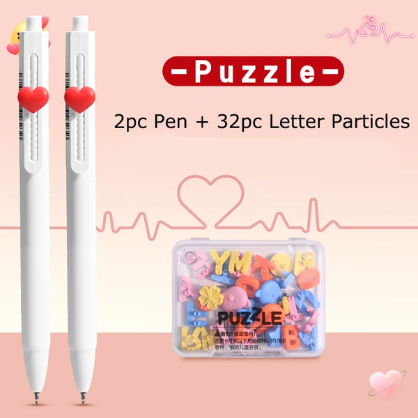 Deli NUSIGN Puzzle Cute DIY Gel Pen,Assorted Words Dual-Ball Smooth&Quick Dry,No Smudge 0.5 Black No Stress pen for kids student