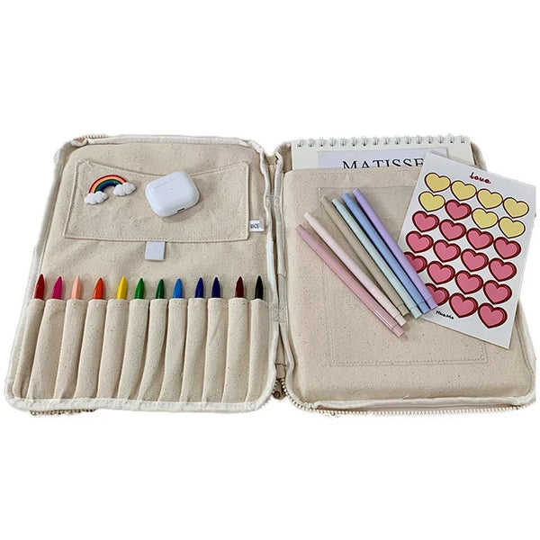 Product Name: Portable children's art crayon stationery storage bag Product material: canvas
