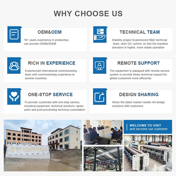 We mainly manufacture spunbond nonwoven lines such as single beam(S line), double beams(SS line) and three-beams(SSS line),spunmelt (spunbond & meltblown) nonwoven lines such as SMS,SSMS,SMMS. The main width are 1600mm/2400mm/3200mm/4200mm.The grammagerange will be from 10gsm to 80gsm with high technical performance. Meanwhile,we also provide the the related slitting machine,treated machine, perforated machine,stretch film wrapping machine, 2/3 layer laminated machine, PE coating machine etc.They arewidely application to the hygiene,medical health care,industrial, agriculture, furniture,household,building, geotextile and filtration fields. Trust us, we are on the way to become your honest business partner!