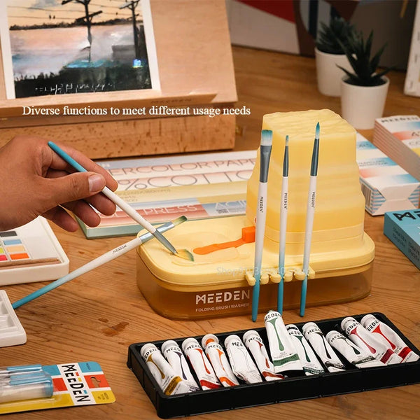 Product features: The folding brush washer is a practical and portable painting tool. It has a cleverly designed folding structure that can be easily stored and does not take up space. When you need to clean your brushes, you can unfold them immediately in a few simple steps. Having a container for easily cleaning your brushes will make your creative process smoother and more enjoyable.