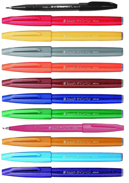 Japan pentel S520 Sign Brush Marker Pens sketch hook line pen - Flexible Tip Assorted Colours - Pack 12