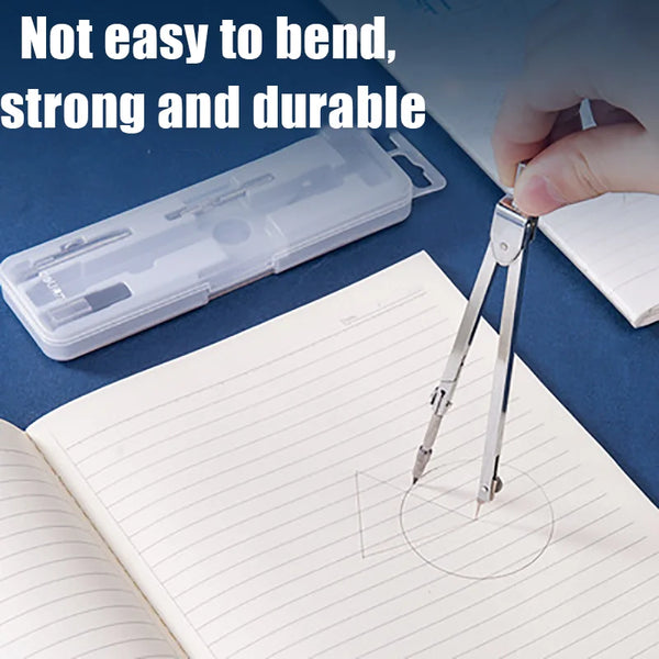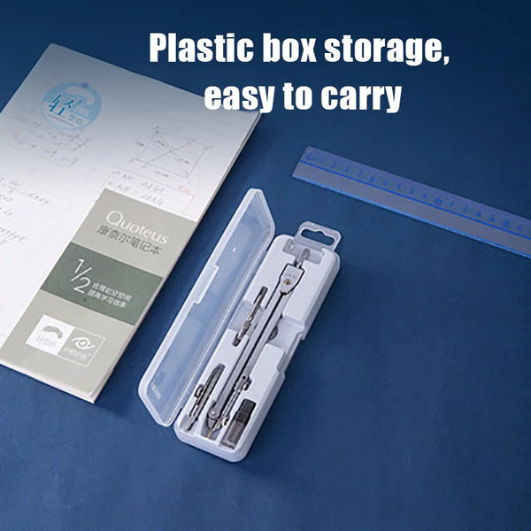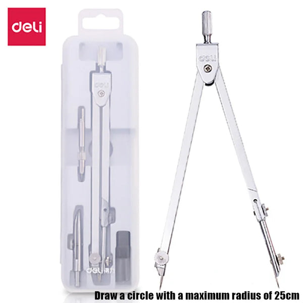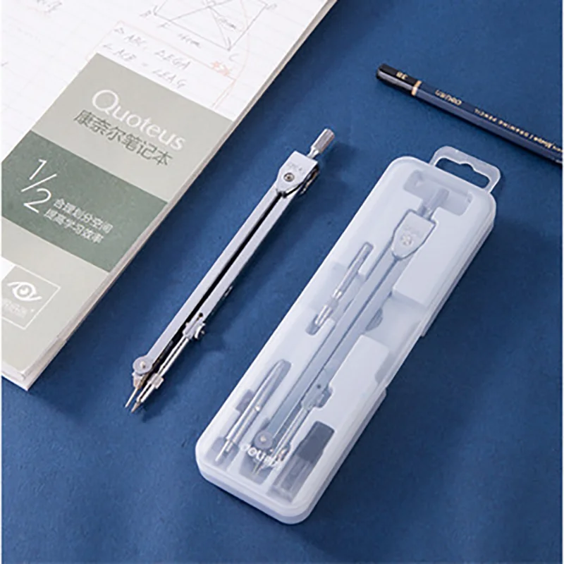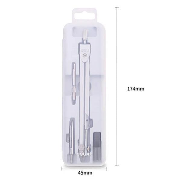 Product name: 8603 metal compasses 4 setsSpecifications: 175*45mm*1 set (compasses +2 compasses head + pen refill + extension bar)Material: PP, stainless steelPacking: PP box