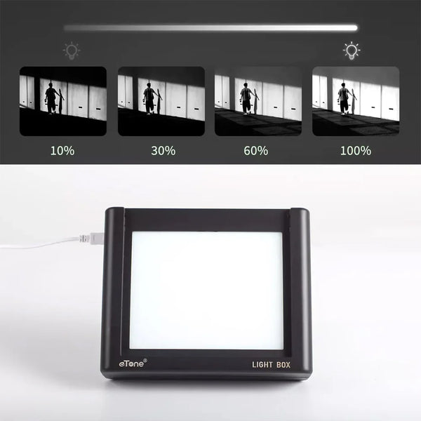1. LED light source: High light source brightness, long open without heat, uniform light emission, adjustable brightness. (This lightbox has 10 levels of brightness adjustment.)