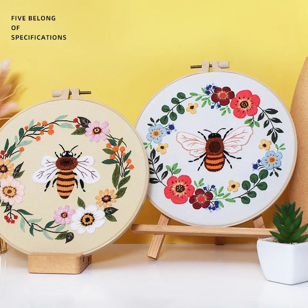 AOOKMIYA Bee Embroidery Kit for Adult Cross Stitch Kits for Hand with Animal Patterns and Instructions DIY with Threads and Needles