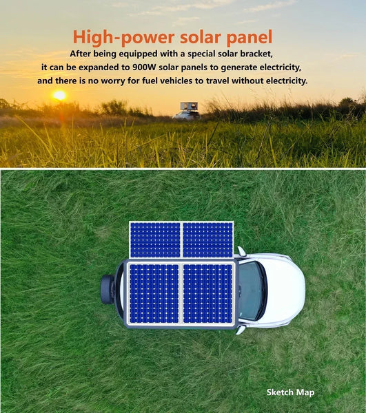 SR-u Platform, High Power Portable Solar Energy or Solar Panel for Option: Expandable 600W+300W solar panel for option, based on the roof top tent SR-u intelligent platform design, scientific layout, reserved interface, can be easily adapted to various surrounding components like car canopy/luggage rack/travel water tank/shower room/leisure platform/air conditioning/solar energy/top searchlight,etc.