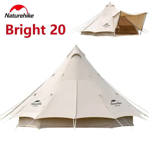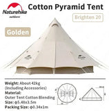 Naturehike Brighten 20 Pyramid Tent Tribe Cotton Cloth Outdoor Camping Travel Tent Luxury Sun Shelter 3-4 Persons Windproof 20㎡