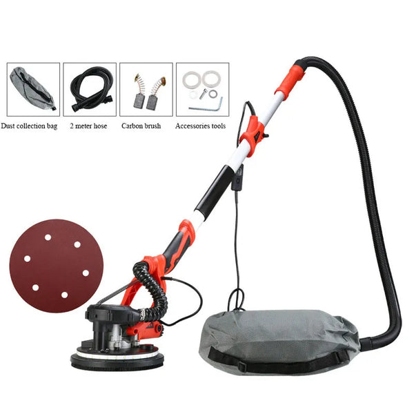 Lixadeira elétrica de cal de parede, retificadora, luz LED, polidora de parede, massa longa, 1250W