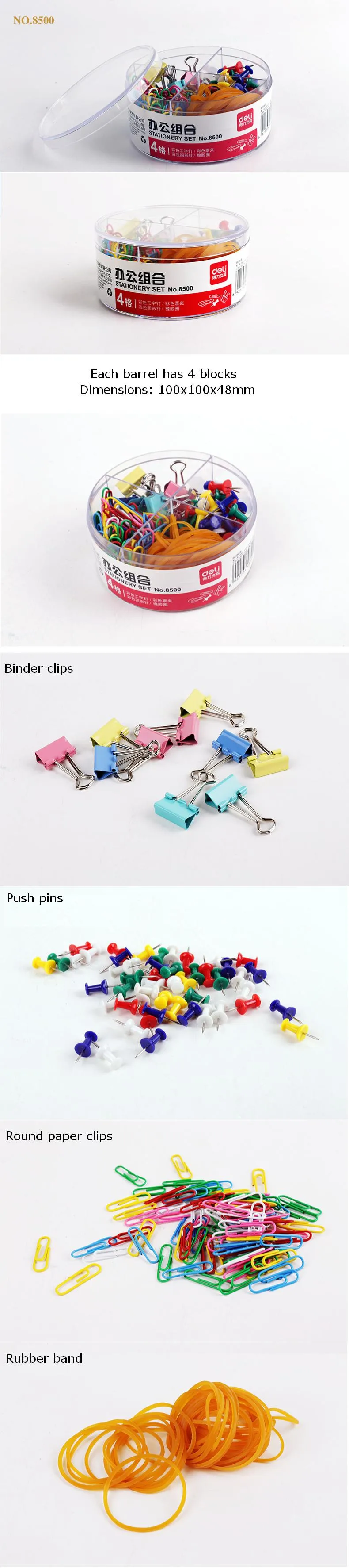 Stationery Set 4 Types Push Pin Round Paper Clips Binder Rubber Band Office DocumentsTools School Test Sheet Home File Bill 8500