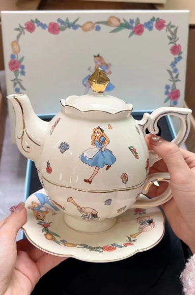 New Product Mother and Child Pot Cute Rabbit Ceramic Coffee Cup and Plate Set Tea Pot Premium Gold Painting Craft