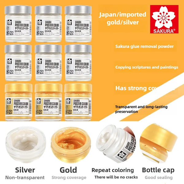 AOOKMIYA Japanese SAKURA Gouache Paint 30ml Calligraphy Copy Spring Festival Couplets Silver Powder Chinese Gold Powder Degumming Gouache AOOKMIYA.COM