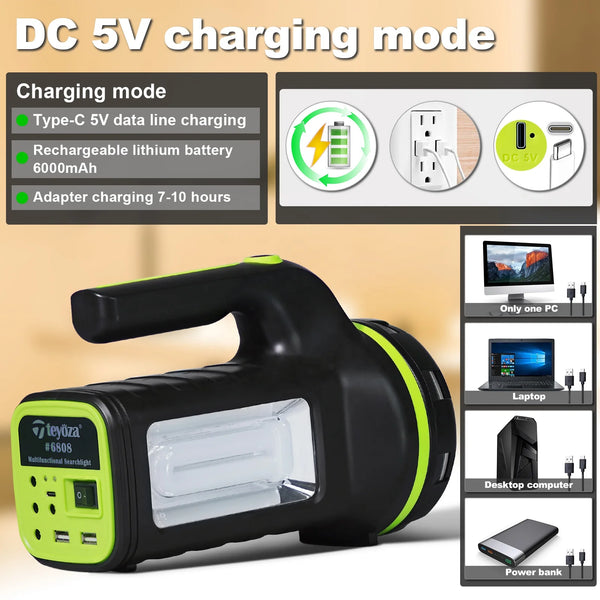 AOOKMIYA Powerful LED camping torch light rechargeable solar flashlight tent lamp power bank searchlight with SOS handheld spotlight