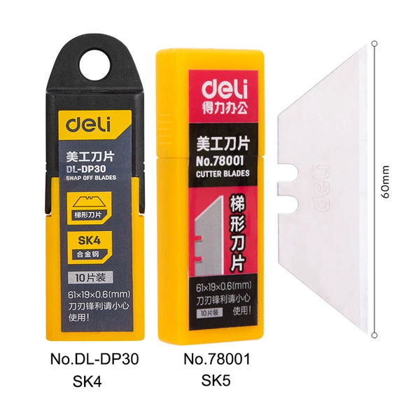 No.DP30-Blade material:SK4 alloy steelNo.78001-Blade material:SK5 alloy steelBlade length: 61mmBlade width:19mmBlade thickness:0.6mmQuantity: 10pcs/box