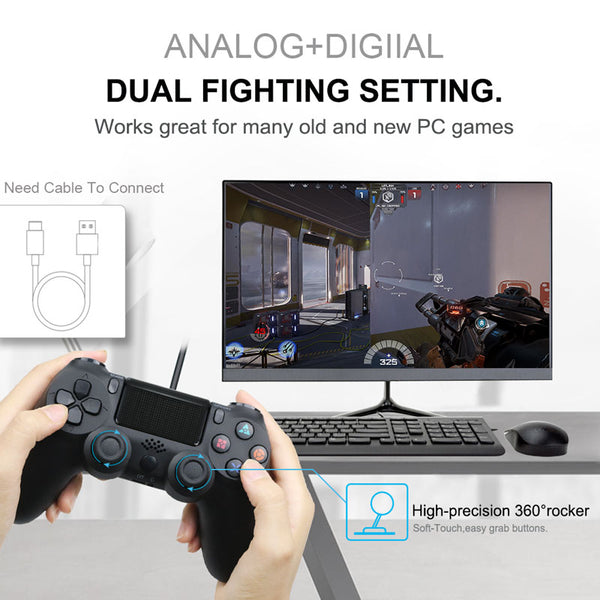 3. Wired Gamepad has dual vibration function, built-in speaker, without headphone jack, without touchpad function, without EXT Jack, it need cable to connect for PS4/PS3/PC.