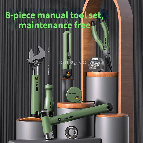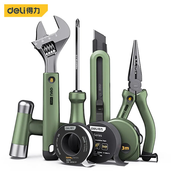 DELI green 6/8 Pcs Multitool Sets Installation Nail Hammer Tape Measuring Home Wrench/Pliers/screwdriver Hand Repair Tools Kits