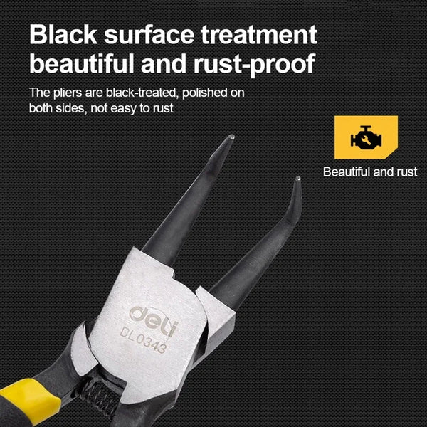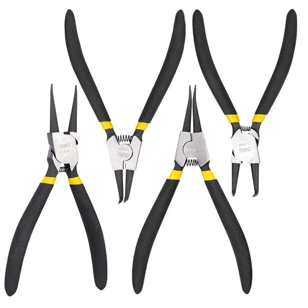 Deli Industry Hand Tools 4 Pcs 7" Circlip and Snap Ring Pliers Set Internal External Straight Curved Retain Snap Ring Pliers