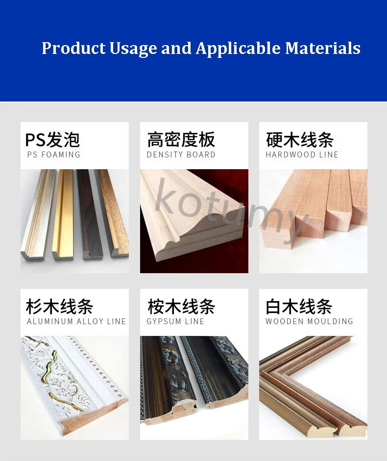 Âmbito de aplicação: madeira maciça, espuma do picosegundo, placa da densidade, tiras plásticas, linhas decorativas, PVC