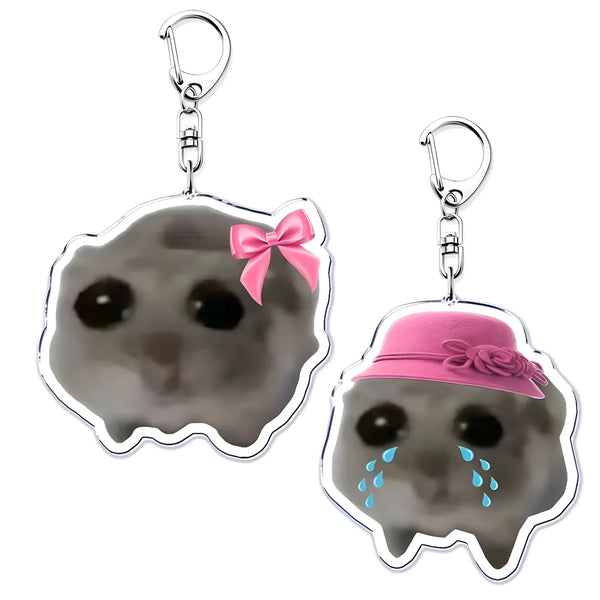 AOOKMIYA ART+ Creative Gifts Creative Cute Pink Bowknot Hamster Keychian For Women Men Simple Design Im Just A Girl Sad Animal Keyring Bag Funny Jewelry