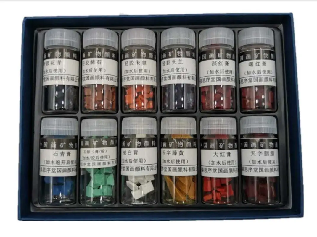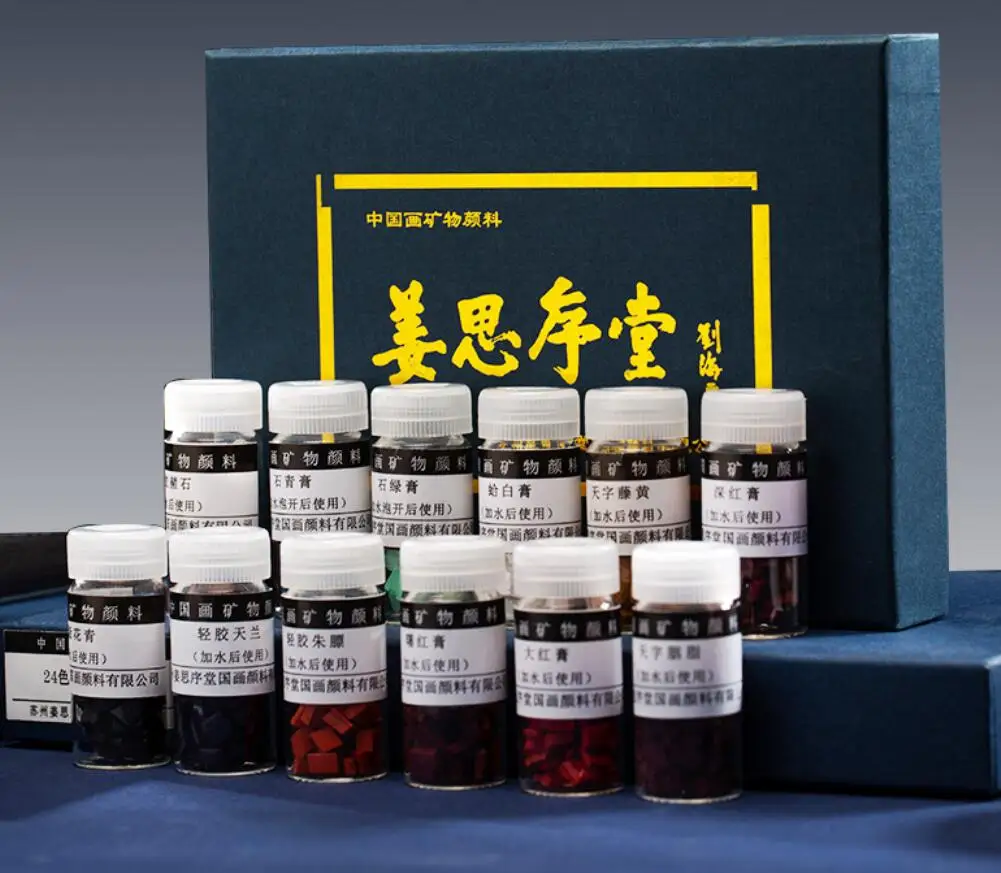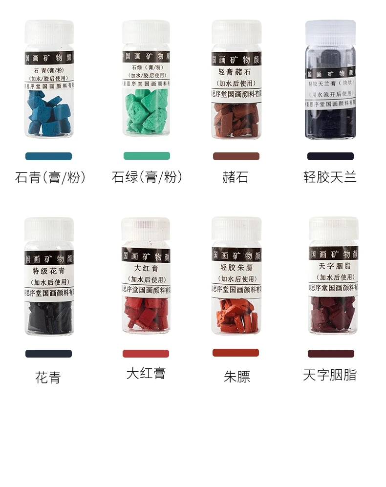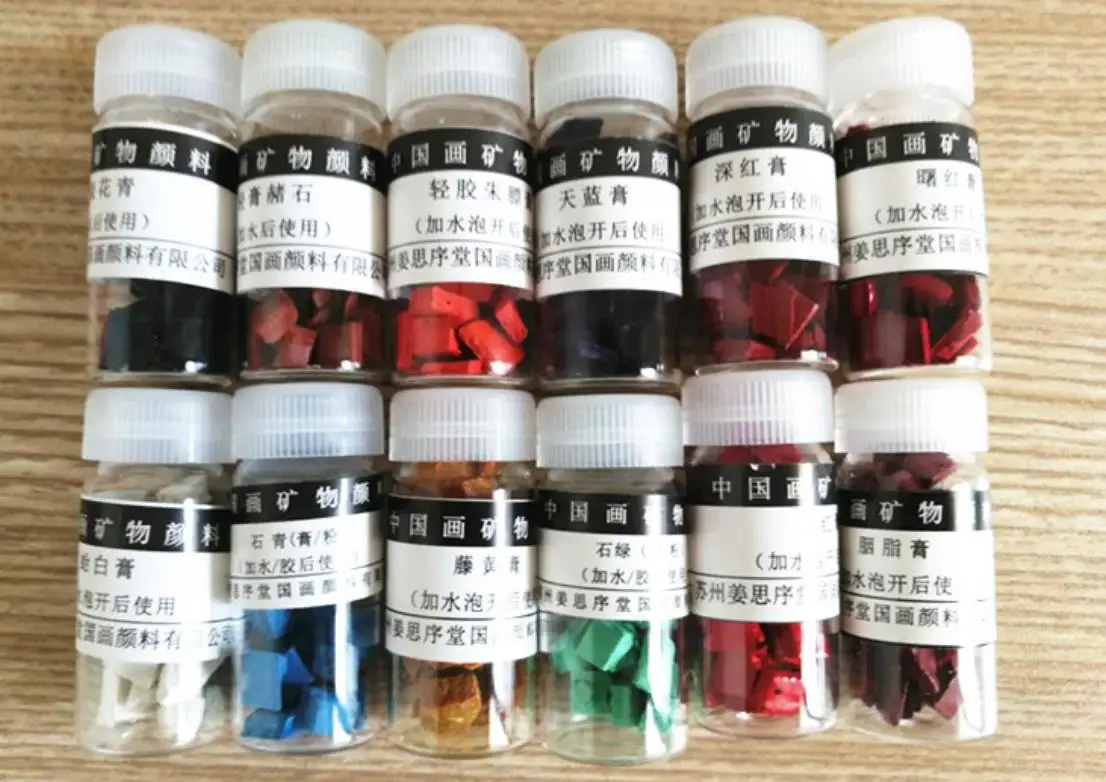 1 INDIGO CHIPS 2 VERMILLION CHIPS 3 Gamboge There are fake jiangsixutang mineral pigments on the market. Please identify the "jiangsixutang" brand. It is the manufacturer of the best Chinese painting pigments in China. Usage: Put a few chips in a sake cup and add small amount of warm water to soak it before using. Add more water to dilute it when needed when painting. A small box of color chips will last many paintings.The Natural Minerals paint won't harm brushes,Paintings will never fade.![]()