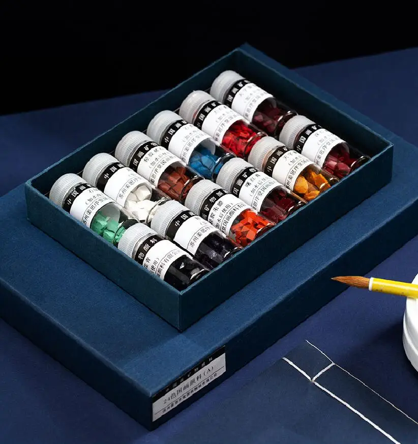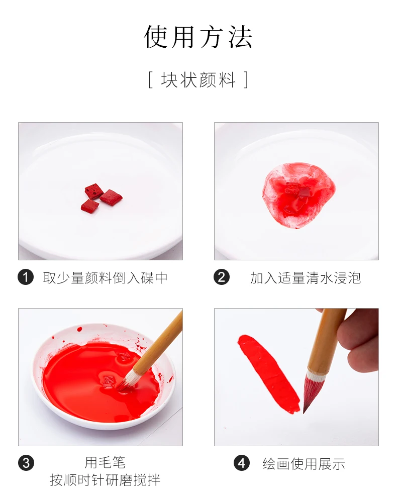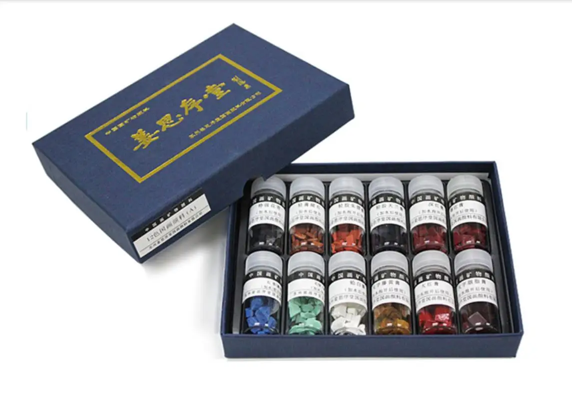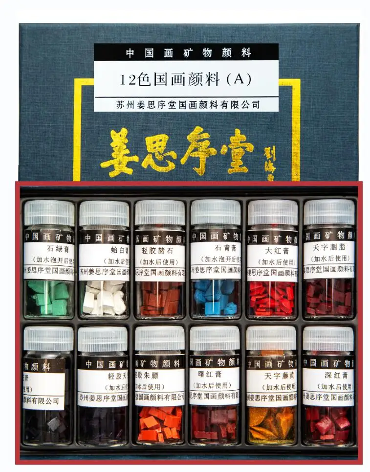 1 INDIGO CHIPS 2 VERMILLION CHIPS 3 Gamboge There are fake jiangsixutang mineral pigments on the market. Please identify the "jiangsixutang" brand. It is the manufacturer of the best Chinese painting pigments in China. Usage: Put a few chips in a sake cup and add small amount of warm water to soak it before using. Add more water to dilute it when needed when painting. A small box of color chips will last many paintings.The Natural Minerals paint won't harm brushes,Paintings will never fade.![]()