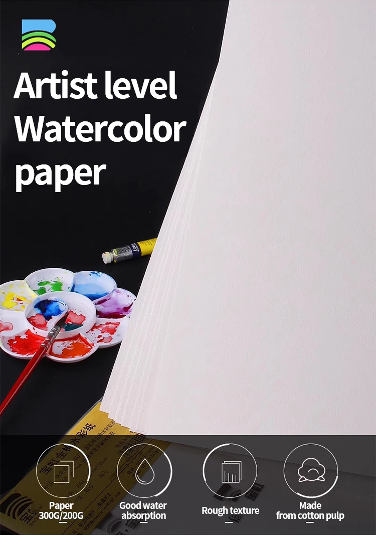 20 Sheets 300g Watercolor Paper Artist Paper 100% Cotton Watercolor Paper Fine Medium Coarse Grain Paper for Artist