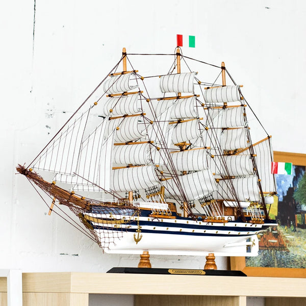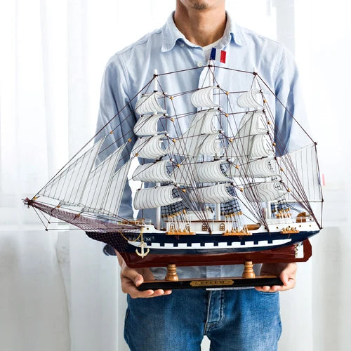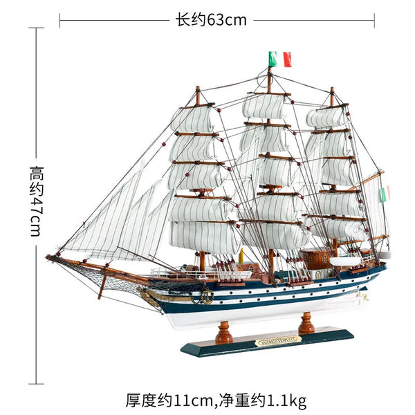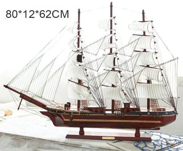 Hot selling wooden sailboat model ornament solid wood living room decoration ship European style gift