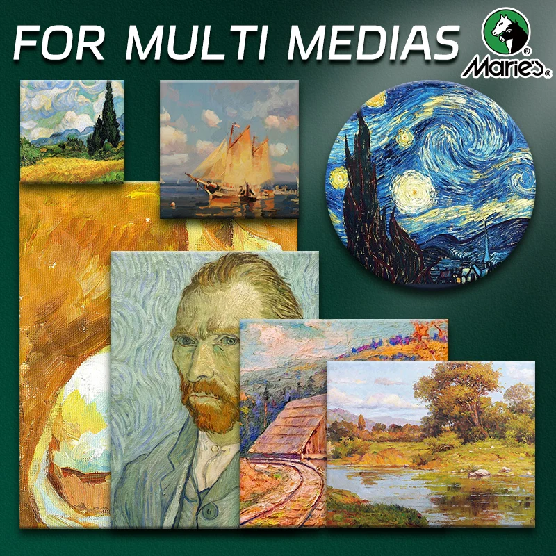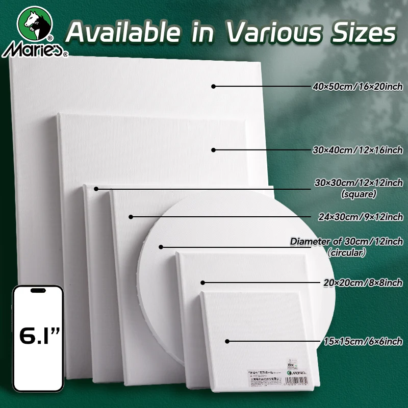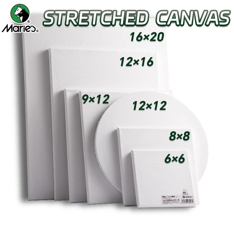 AOOKMIYA 1pc Marie's Stretched Canvas,Primed White Canvas with 6x6/8x8/9x12/12x12/12x16/16x20" and Round 12" for Oil,Acrylic,Tempera