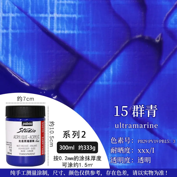 France Pebeo Bright Acrylic Pigment 300ML Professional Art DIY Hand Painted Stone Wall Graffiti Stone Painting Shoes Coating