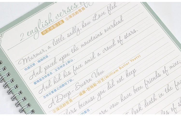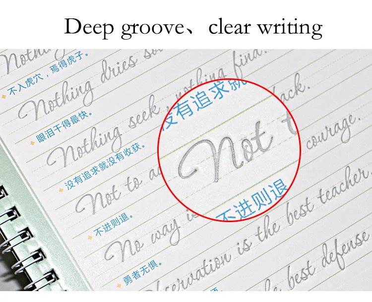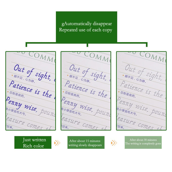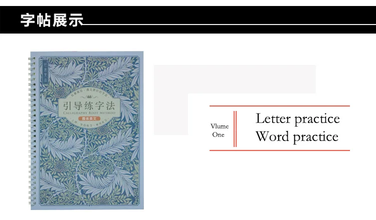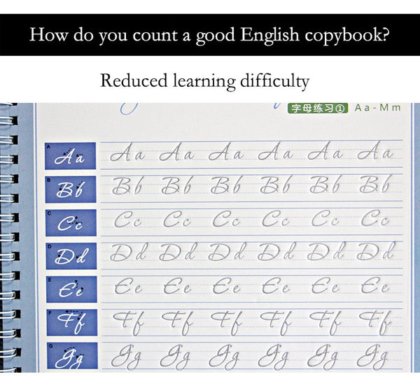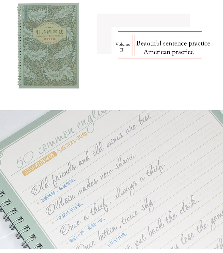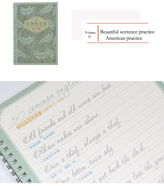 2pcs English Copybook Exercise Book 1pen Practice Circular Font Hard Pen English Calligraphy Word Stickers Word Reuse