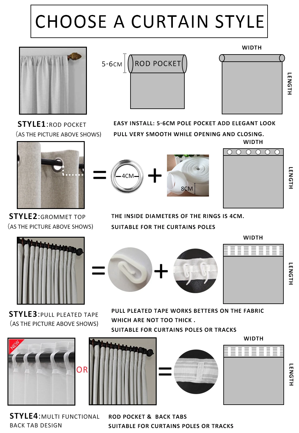 1.Curtains width=2xA or 1.5xA (2 times or 1.5 times of the pole or the track width).