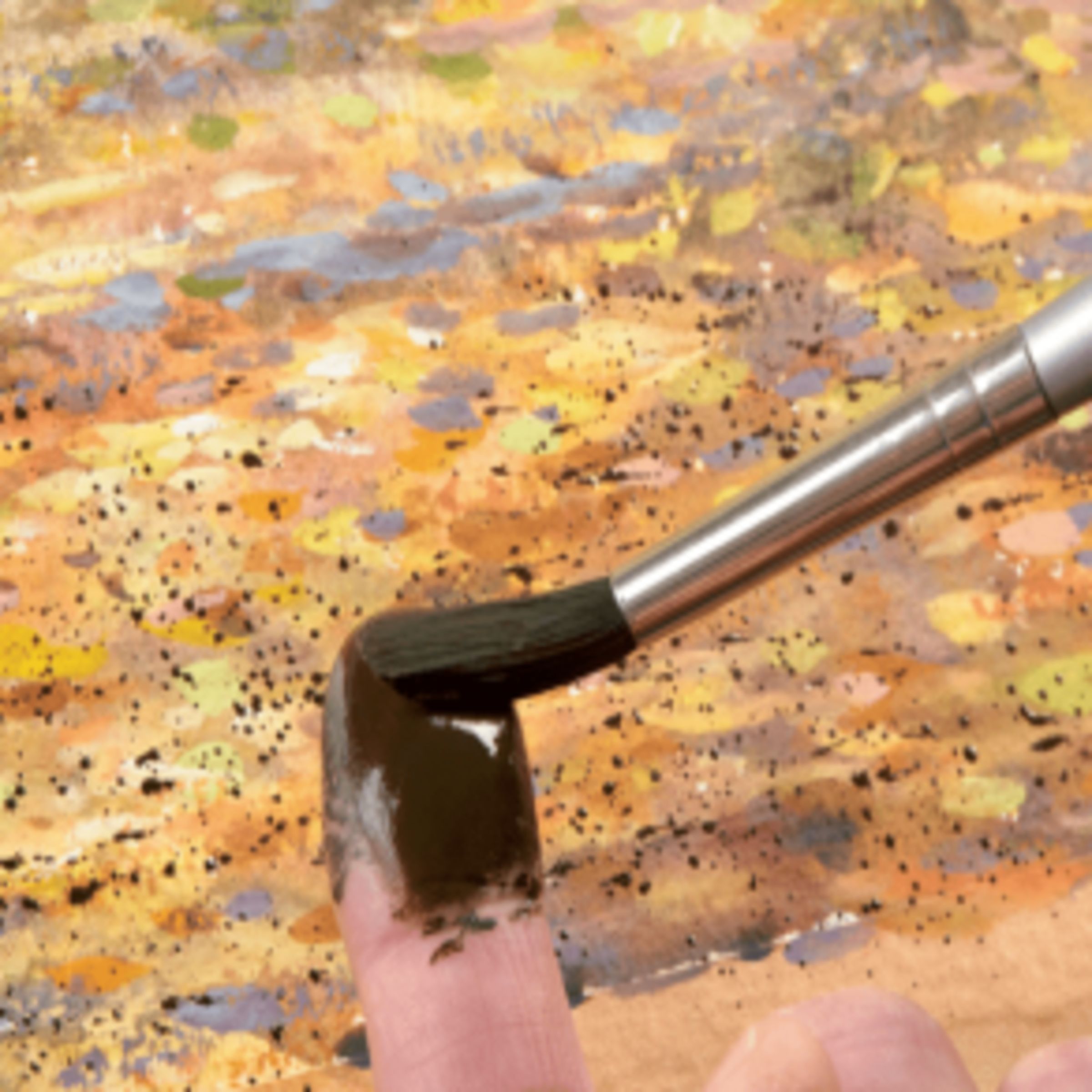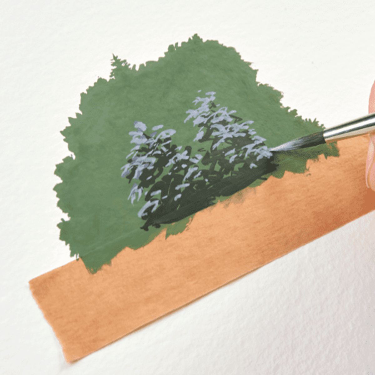 эта техника незаменима для создания разнообразных текстур, например листвы или камней. Вам нужны краска густой консистенции, с минимумом воды, и влажная кисть.