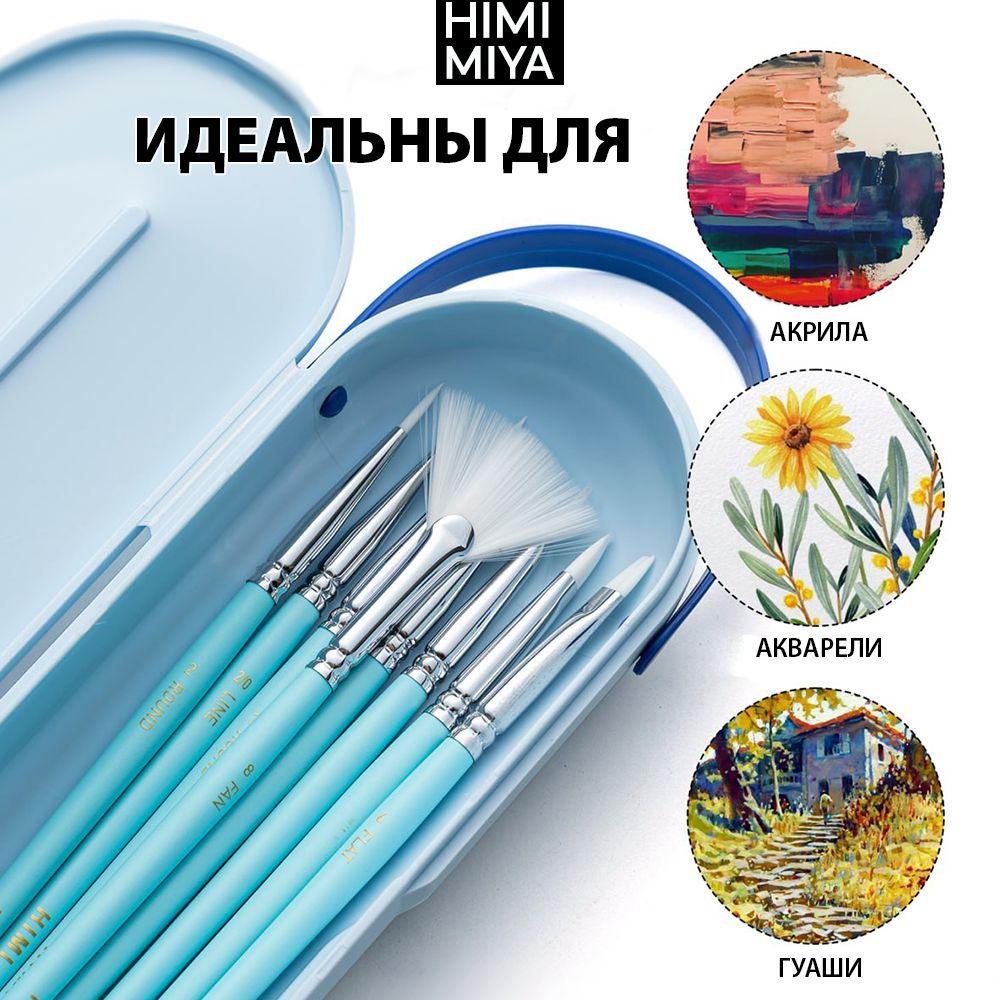AOOKMIYA Набор кистей для рисования HIMI MIYA Кисточки синтетические художественные для акрила, гуаши, акварели, 8 штук AOOKMIYA.COM