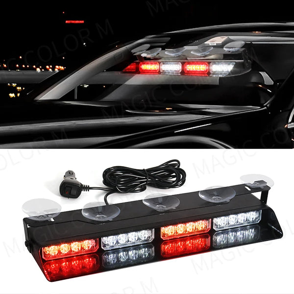 16 LED Car Strobe Warning Light Assembly Front Windshield Emergency Lamp Yellow White Red Blue For Vehicles Trucks Waterproof