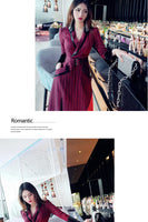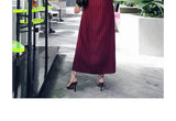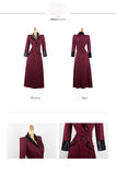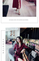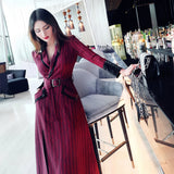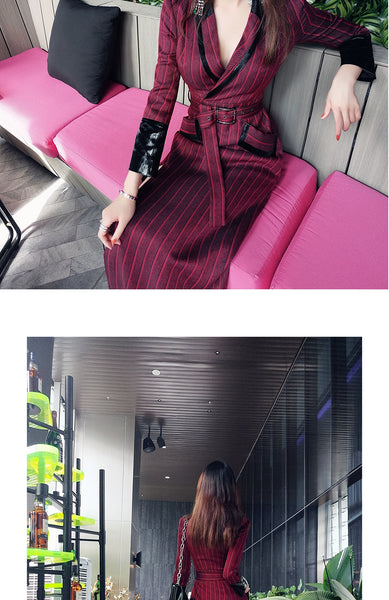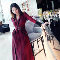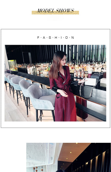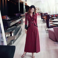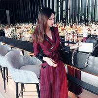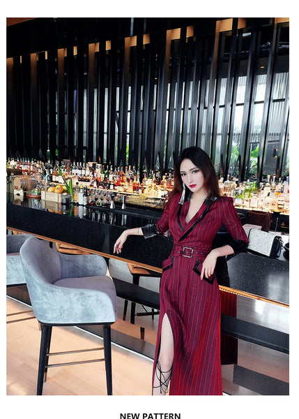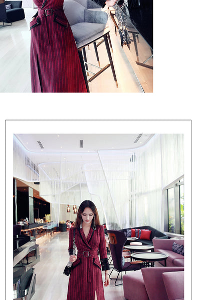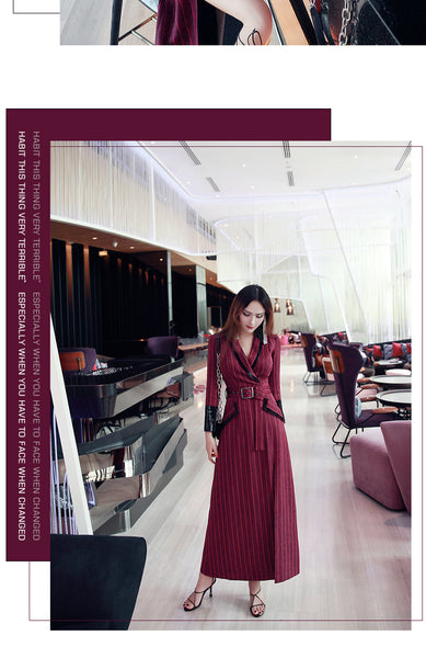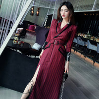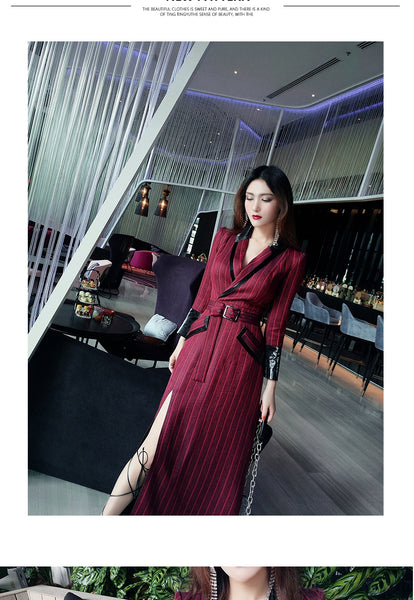 AOOKDRESS spring new suit collar slit long skirt nine-point sleeves and leather waist slim striped dress