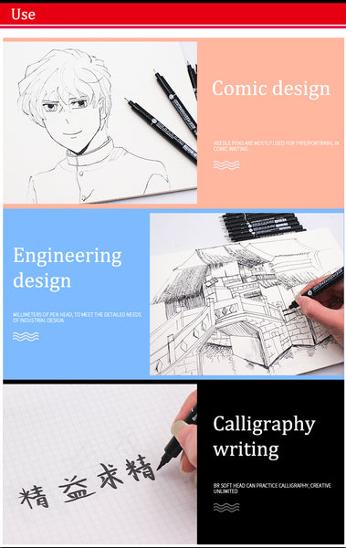 9Pcs/Set Needles Fine liner Brush Pen Sketch Drawing Fiber Pen For Designer Architect Artist Comics office waterpfoof