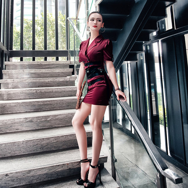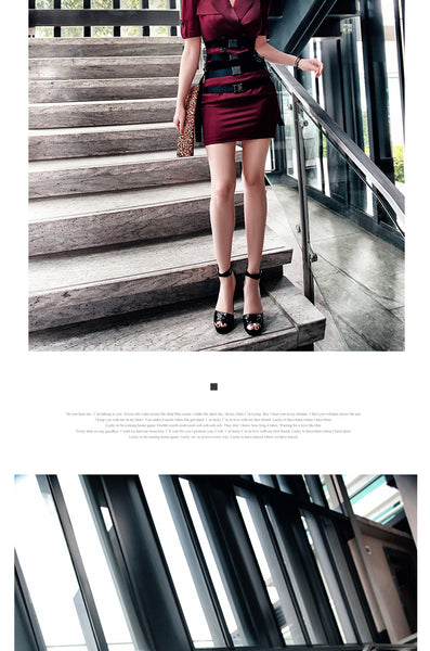 | Zip and button position: Front center button, concealed button skirt, back center zipper |