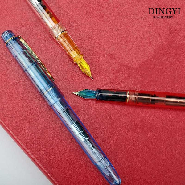 DINGYI Plastic Clean Transparent Fountain Pen 0.5/0.38mm/Curved Nib Art Writing Calligraph Piston Ink Pen School Office Supplies