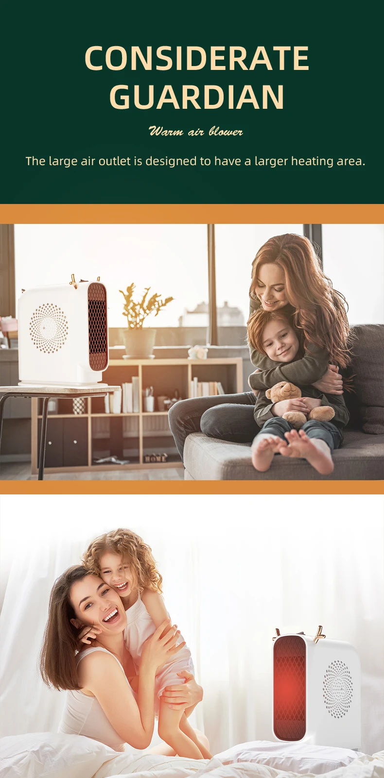 2. High thermal efficiency: Double sided air intake, accelerating heat conversion; Cycle heating, enjoy the whole house.