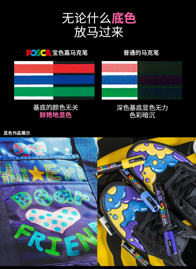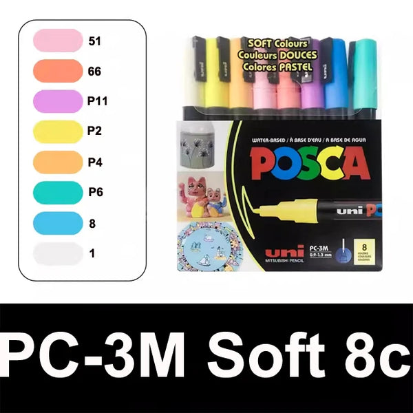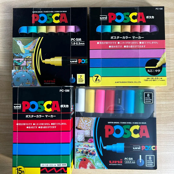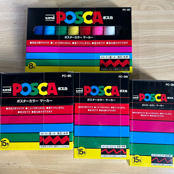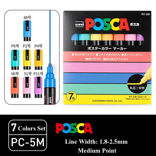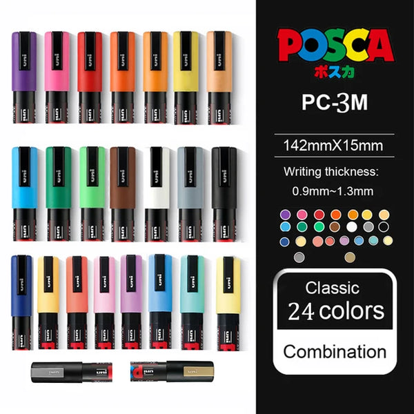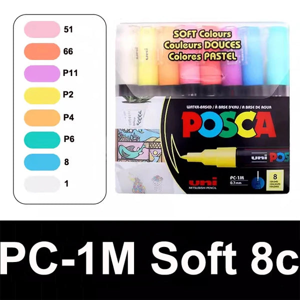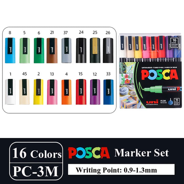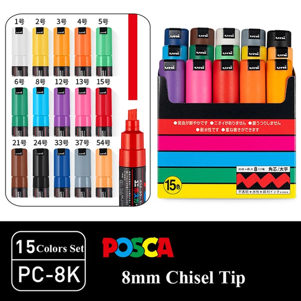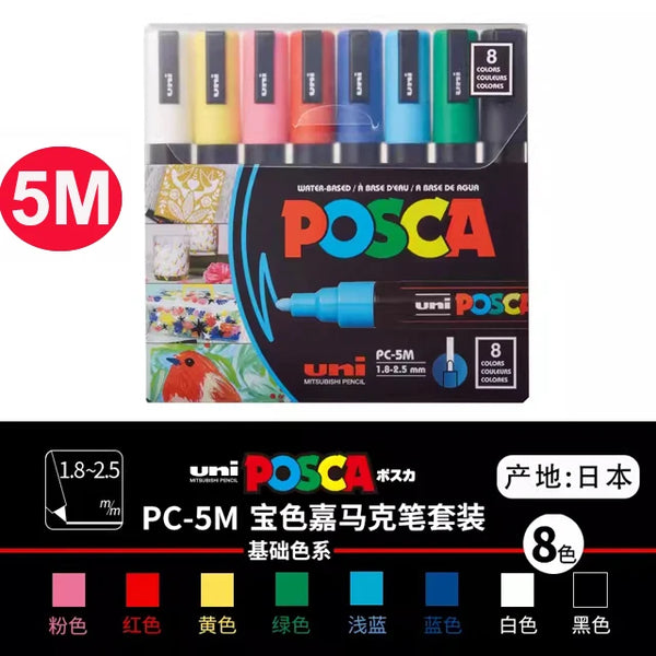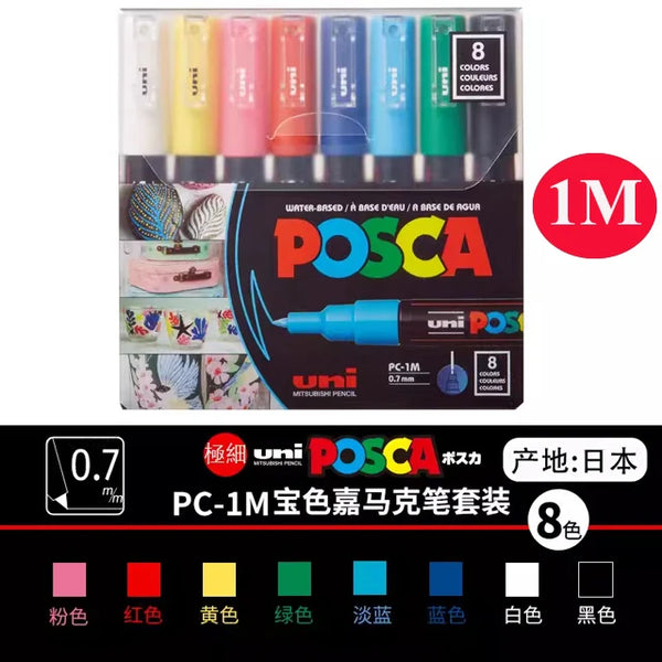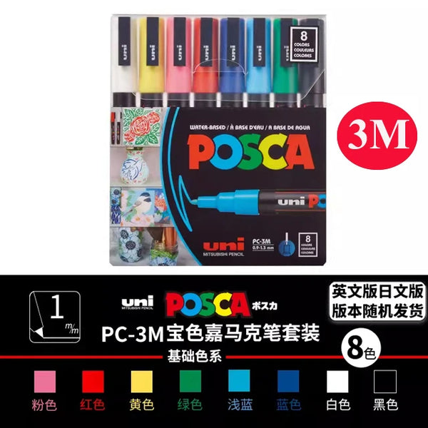 Uni Posca Paint Marker Pen Set, Graffiti Art Pen, Base de água, Graffiti Gift, PC-1M, 3m, 5m, 8K, 17K, 7, 8, 15, 16, 24, 29, 48 cores