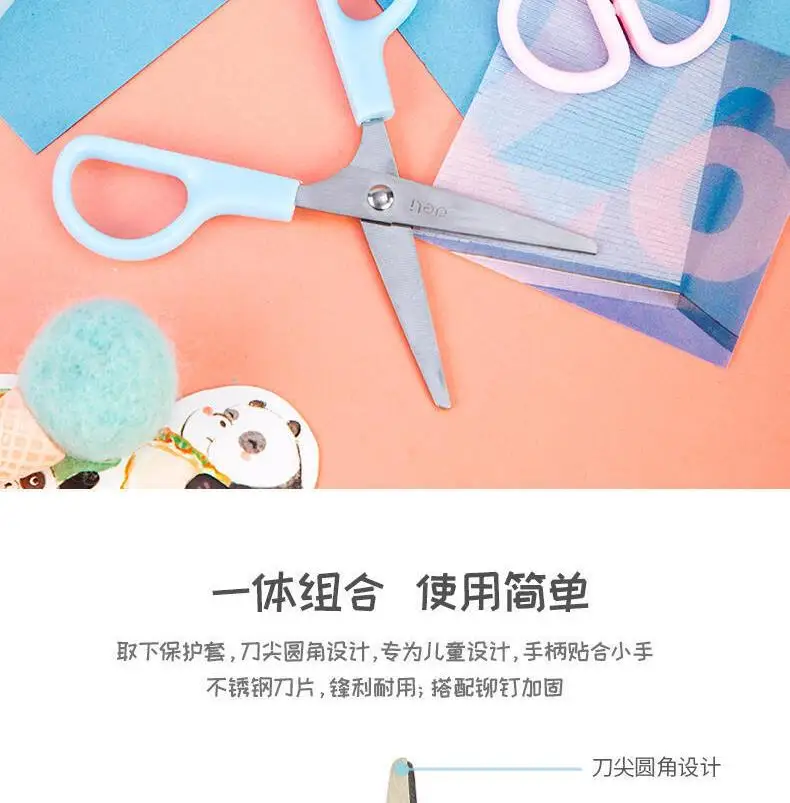 DELI Safty Scissors for Kids Student DIY Paper Scissors 122mm With Sleeve Cutting Tool Stationery