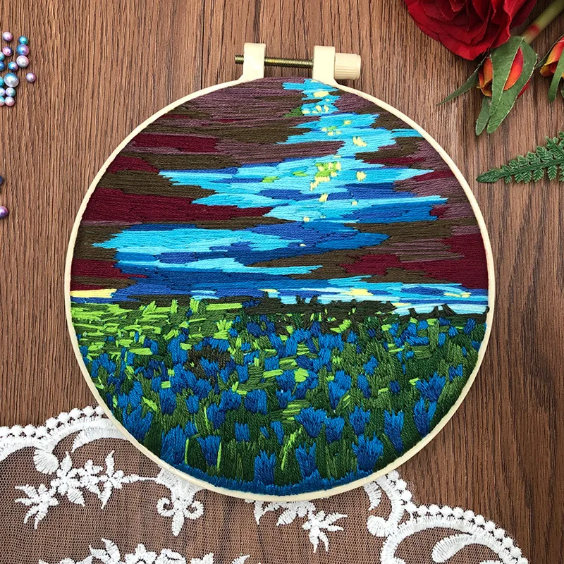 AOOKMIYA Nature Scenery Embroidery Kit for Beginners with Pattern, Needlepoint Starter Kits for Adults, Embroidery Set