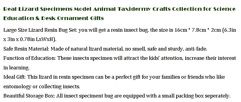 Lizard Specimens Model Animal Taxidermy Crafts Collection for Science Education & Desk Ornament Gifts