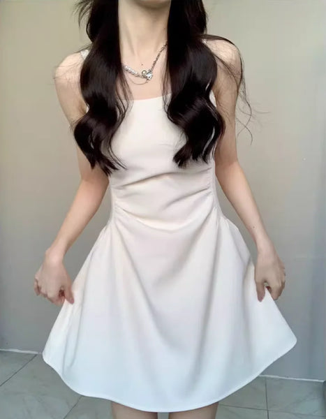 AOOKDRESS White halter dress children summer small man high-grade French pure to slimming waist small white skirt