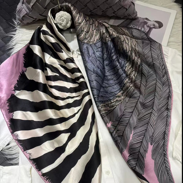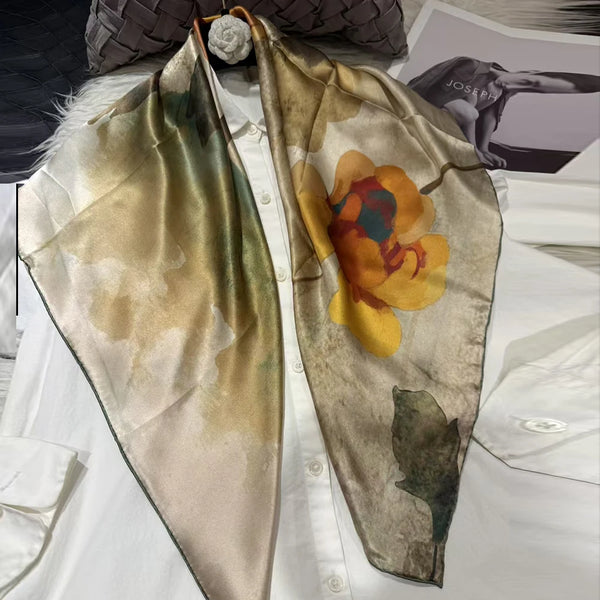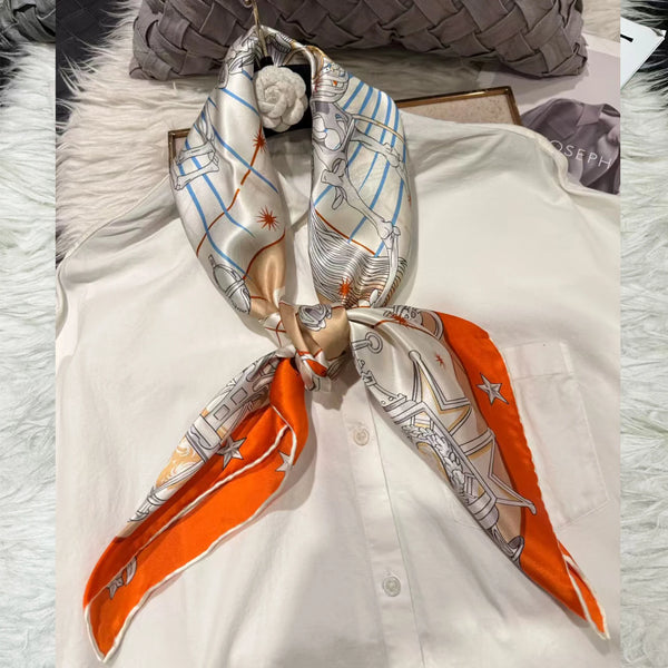 BYSIFA| Orange White Women Pure Silk Scarves Hijabs Elegant Chain Design 100% Mulberry Silk Square Neck Scarf Shawl 86*86cm