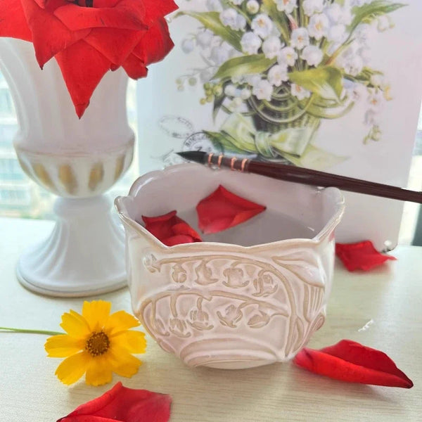 AOOKMIYA Tulip Shape Ceramic Watercolor Palette Lily of The Valley Shape Washing Cup/brush Bucket Easy To Clean Painting Art Supplies