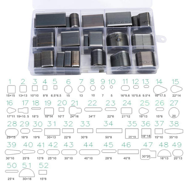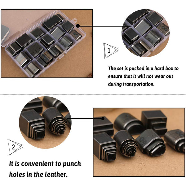 52 Shape Style One Hole Hollow Punch Cutter Set: There are 52 shapes in the pictures, including rectangle, oval, square, round, and so on. You can choose any leather punch shape and make out what you want. Perfect Leather Tool: Our shape-style hollow punch cutter is made from premium material, high density, anti-oxidation, can quickly punch, work efficiently. The incision position is specially designed, thin and sharp without leaving marks. Rugged and Durable Tool: Place the punch cutter on the item that you need to punch, then beat it with a small hammer until punch is completed. Don’t worry about damaging the metal shapes, it is very durable. Meet Your Varied Needs: 52 different shapes and sizes, meet your varied needs in Handmade or DIY leather craft. Perfect leather hole punch set for belts, watch bands, straps, dog collars, saddles, shoes, fabric, DIY home or craft projects, etc.