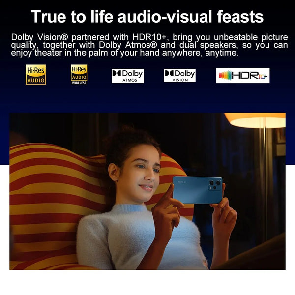 Dolby Vision® partnered with HDR10+, bring you unbeatable picture quality, together with Dolby Atmos® and dual speakers, so you can enjoy theater in the palm of your hand anywhere, anytime.Immerse yourself in a truly vivid display