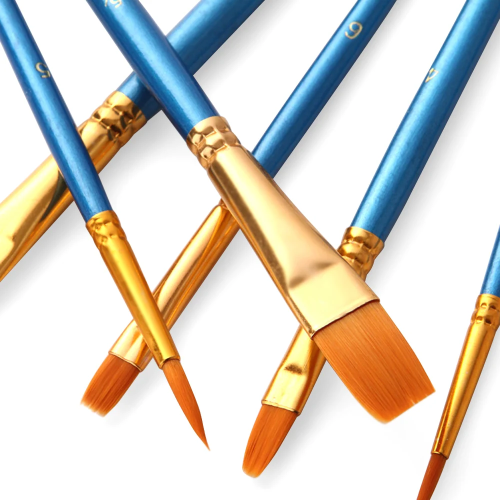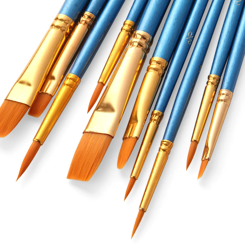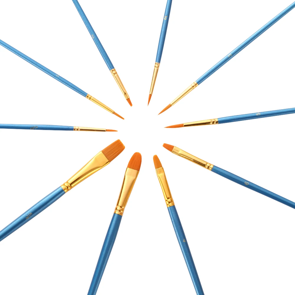 Multipurpose paint brush set comes with 50pcs brushes containing 10 kinds of strokes -- #2/0 pinnacle, #1 pinnacle, #2 pinnacle, #3 pinnacle, #5 pinnacle, #2 flat, #6 flat, #5/8 flat, #4 tongueshaped, #8 tongueshaped.