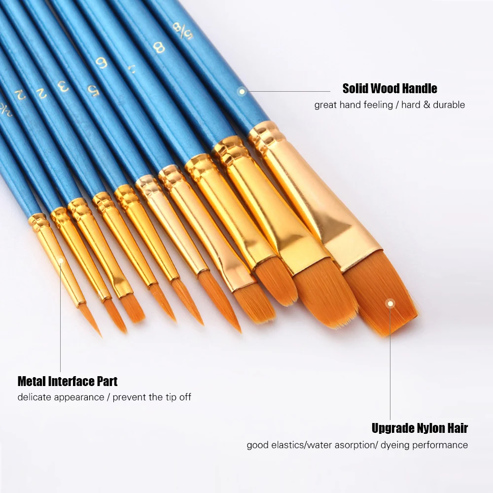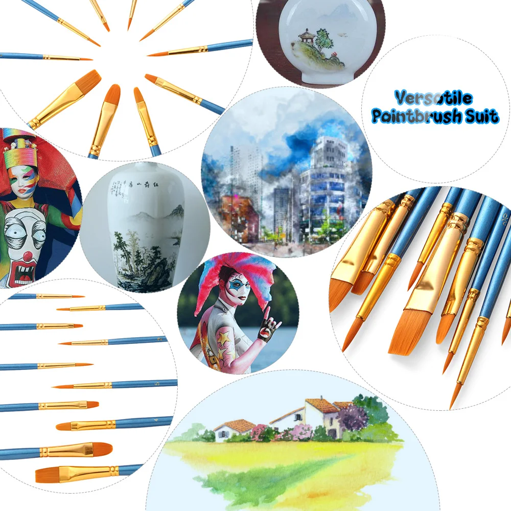 Wide applicable paint brushes set, suitable for oil, acrylic, gouache painting, etc, capable to meet different drawing requirements.