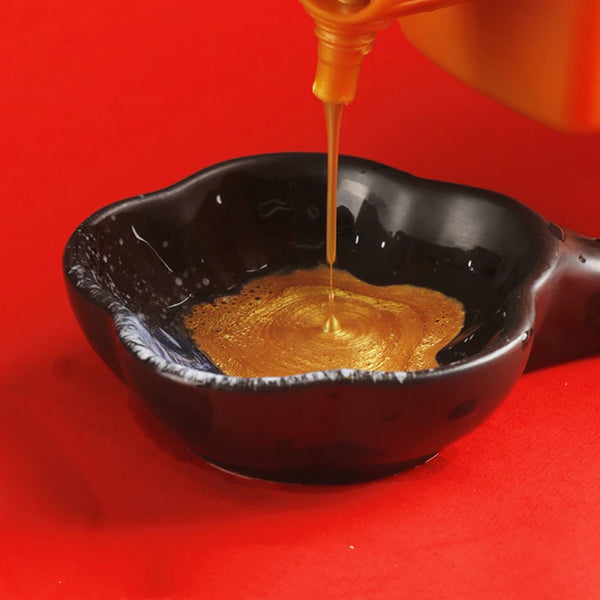 Name: Gold Ink Specification: 1000g 500g 250g 120g 60g Purpose: writing Spring Festival couplets, copying scriptures and painting Use: Shake before use Feature: smooth writing of mineral raw materials